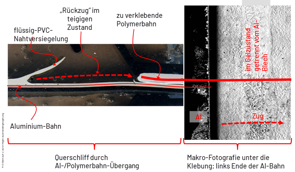 Auf einem Flachdach wurde an das Aluminiumblech eine Kunststoffdachbahn angeschlossen und ordnungsgemäß verklebt, inkl. Nahtabdichtung. Nur: ein Sommer-Regen hat die Polymerbahn und das Aluminium so stark abgekühlt, dass die noch nicht fertig abgelüftete Klebung noch teigig war und die entstandenen Zugkräfte durch das Zusammenziehen der Materialien nicht mehr aufnehmen konnte. Unsere Materialografie lieferte die Beweise, […]