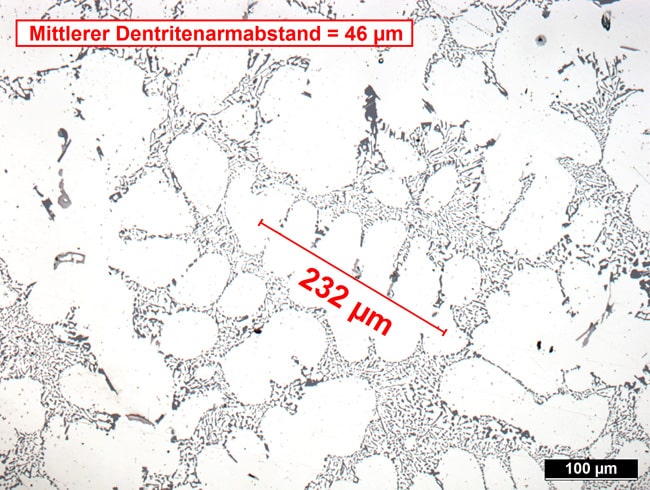 Mithilfe der Messmethoden nach dem VDG-Merkblatt P220 lassen sich somit präzise Rückschlüsse auf die Erstarrungsbedingungen und deren Einfluss auf das Gefüge und die mechanischen Eigenschaften der Aluminium-Gusslegierung ziehen.